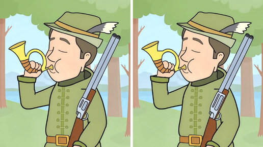 Всего 3 отличия👀 на рисунке Охотник в лесу. Тренировка наблюдательности.