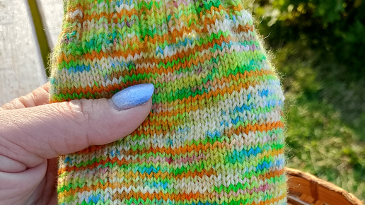 Всем привет ☀️ Рада приветствовать вас у себя на канале. Друзья, а вы помните я вам показывала пряжу из последнего окрашивания. Вот эти две пасмы носочной пряжи. Красила пряжу пищевыми красителями в таблетках. Видео ролик как красила тут👇 Как ложиться пряжа в лицевую гладь, мне нравится. Вяжу и отдыхаю!...