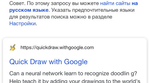 В поисковой строке гугла введи «quick draw with google» и открой первую ссылку Нажми «начать» Тебе нужно нарисовать то, что будет написано на экране Нейросеть должна угадать нарисованный предмет