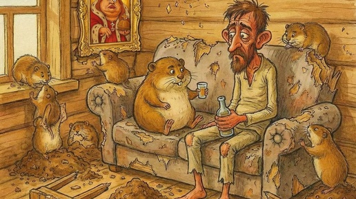 Лишайка был культурный малый, Лишайка Питер постигал. Пока ходил по эрмитажам, Избушку лемминг доедал. Лесной грызун был некультурный, Ни разу не читал Дюму, Не видел голубые ёлки, Не плакал над судьбой Му-Му. Пока Лишай был в восхищеньи, Ел рёбра, стейки и паштет, Скупал картины и стаканы, Грызун прогрыз его паркет. Сожрал пакеты с труханами, Сожрал комод и шифоньер Сожрал обеденную группу, Вконец испортив интерьер. Забилось...