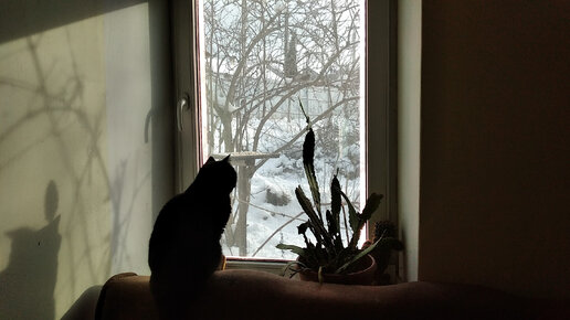 Я уже писала раньше, что мы с мужем закончили биофак. Я - геоботаник, а он - орнитолог по специализации. Мы 13 лет работали на территории заповедника на Южном Устюрте. И по по роду деятельности ему приходилось изучать растения, а мне было просто интересно наблюдать за птицами. И сейчас в Крыму у нас много времени для этого, есть где поездить, посмотреть. Это я к чему. Получается, что в семье у нас два орнитолога, профи и любитель. И вот появился третий: наша кошка Буся. В холода мы устанавливаем на столбик кормушку перед самым окном...