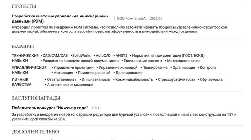 Пример резюме руководителя конструкторского бюро 2025 - Как составить