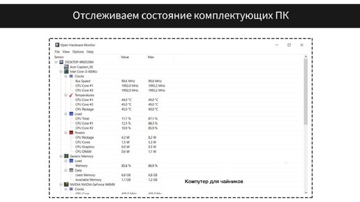 Иногда внезапная кончина какого-либо комплектующего может нанести катастрофический урон не только накопленным данным и рабочим материалам, но и организму пользователя, в частности — нервной системе. Open HardWare Monitor Программа, которая позволит исключить подобный форс-мажор...