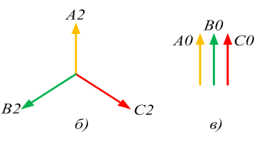 В технике релейной защиты и автоматики очень широко распространен метод симметричных составляющих, позволяющий повысить чувствительность устройств защиты и надежно отстроить их от нагрузочных режимов. Для упрощения расчётов несимметричных режимов в трехфазной сети был разработан метод симметричных составляющих. Основа метода заключается в том, что любая несимметричная система векторов может быть представлена в виде трех симметричных трехфазных систем векторов: система прямой последовательности (рис...