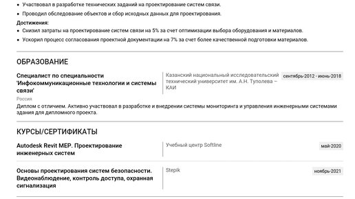 Пример резюме инженера-проектировщика СС 2025 - как составить