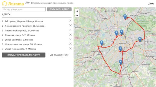 Сервис mini.aurama.ru — это инструмент, позволяющий строить оптимальные маршруты по нескольким точкам, а также делиться ими с исполнителями. Оптимизация маршрутов — выход на новый уровень эффективности Понятие "маршрут через несколько точек"...