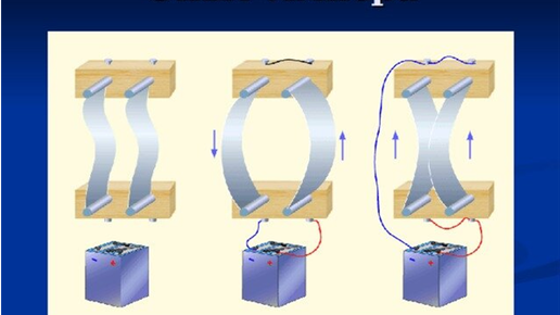 На дворе 1820 г. и Андре Мари Ампер экспериментирует с тонкими параллельными проводниками, которые обнаруживают механическое движение в зависимости от направления тока в них. Каждый проводник имеет собственное магнитное поле, которое с некоторой силой действует на соседний проводник. Проводники могут притягиваться или отталкиваться. Однако проводники в опыте были жестко закреплены концами. В ином случае, они бы развернулись в сторону наименьшего сопротивления. Из представленных опытов следует, что...