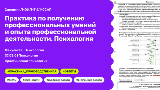 Практика по получению профессиональных умений и опыта профессиональной деятельности. Психология. Синергия/МОИ/МТИ/МОСАП