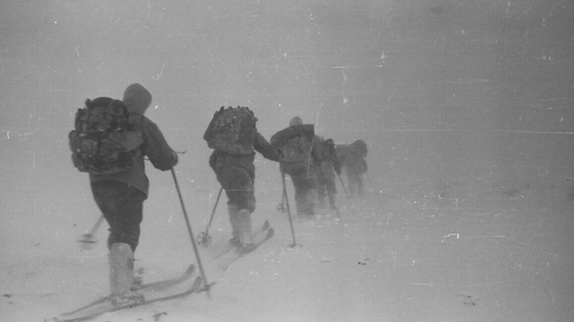 Предыдущая статья: К сожалению, пока никто из читателей не дал внятного объяснения этому кадру: почему и зачем они там в метель катаются без рюкзаков. А жаль. Впрочем, ничего удивительного - я и сам это понял далеко не сразу. Только один читатель высказал свой вариант: что, дескать, Дятлов с Дубининой, "как самые опытные", бросив всю группу, пошли искать место для палатки. Вот такая тактика "поиска места для ночевки" была у Дятлова. А когда нашли, Дятлов с Дубининой оставили свои рюкзаки и пошли за остальной группой...