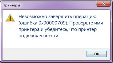 Невозможно установить принтер по умолчанию. Ошибка 0x00000709.