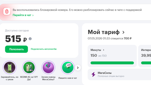 Одна из первых и не таких страшных, это то что оператор любит всё списывать в минус, не хватило денег на оплату тарифа - держи -700 рублей(или сколько он стоит), неприятная вещь, такое я встречал только у мтс ещё и больше ни у кого, вообще не приятно когда в итоге через месяц ты ложишь деньги, а потом у тебя уже за этот месяц списывают в минус, из-за этого приходится использовать блокировку номера чтобы не попасть в просак. Вторая причина более неприятная: Чат поддержки, отвечает бот который ничего...