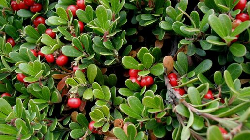 #Толокнянка обыкновенная  (#Arctostaphylos uva-ursi)  Многолетний вечнозеленый кустарничек, с сильно вяжущими и горьковатыми на вкус листьями. Обладает противовоспалительным, антисептическим, мочегонным и другими лечебными свойствами.  Толокнянка обыкновенная, или медвежье ушко – многолетний вечнозеленый распростертый кустарничек высотой 25-130 см. Стелющиеся ветвистые побеги растения покрыты темно-бурой корой. Листья очередные, вечнозеленые, кожистые, сверху морщинистые, продолговато-обратнояйцевидные, длиной около 2 см, шириной 0,5-1,2 см, цельнокрайние, смещены на верхнюю сторону побега...