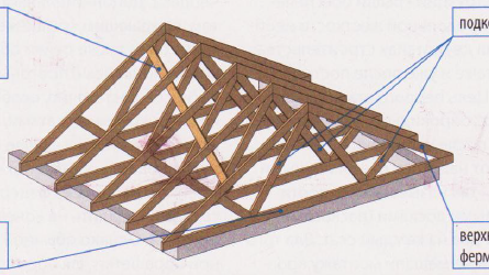 Основу крыши составляет стропильная система в виде треугольных деревянных ферм. Основной элемент фермы - стропильная нога, которая является опорой обрешетки, на которую крепится кровля. Стропила могут быть наслонными или висячими. А стропильная система - распорной, безраспорной и смешанной. Распорная система с висячими стропилами. Стропила сходятся на коньке и опираются только на стены здания, создавая распирающие силы, действующие на стены дома. Чтобы компенсировать это воздействие между стропилами монтируется горизонтальный элемент - затяжка...