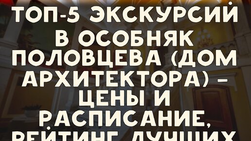 ТОП-5 экскурсий в особняк Половцева (Дом Архитектора) — цены и расписание, рейтинг лучших