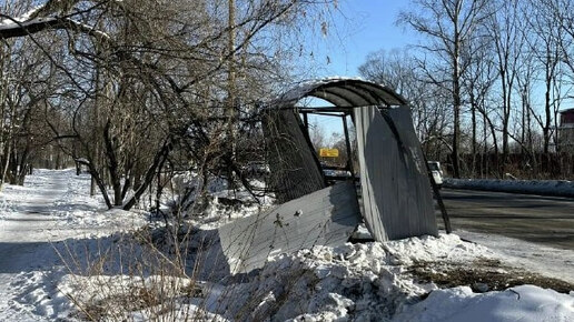 Трактор снес: заменить остановку после неудачной чистки снега требуют хабаровчане (ФОТО)