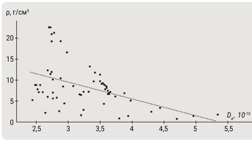 (Из писем в редакцию. «ХиЖ» 2023 №7) Строгой зависимости плотности вещества от атомного номера и атомной массы нет. Почему так? Видимо, потому, что плотность зависит от двух факторов: массы атома, прежде всего его ядра, и от того, как атомы упакованы, фактически от размера атома. Попробуем эту зависимость проявить на примере металлов и полуметаллов. Плотность у них изменяется в пределах от 0,53 г/см³ (литий) до 22,6 г/см³ (осмий, иридий). Диапазон размеров атомов составляет 2,44·10⁻¹⁰ м (германий) – 5,34·10⁻¹⁰ м (цезий)...