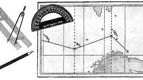 Александр Суворый На второй «паре» занятий в Севастопольской Морской школе ДОСААФ мы обнаружили на наших столах морские карты, простые карандаши, транспортиры, циркули-измерители и небольшие параллельные линейки. Наш «Учитель» тоже имел такую же карту на классной доске. По ней он рассказывал, показывал и прокладывал линии и углы, а мы за ним всё старательно повторяли на своих картах.