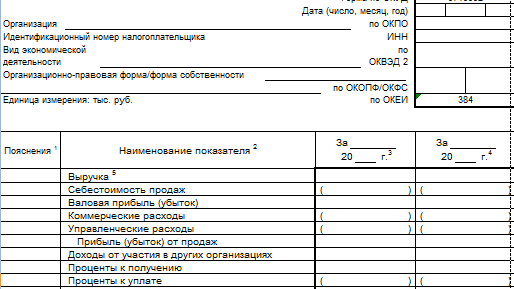 Отчет о прибыли и убытках - форма № 2 (бланк и образец)