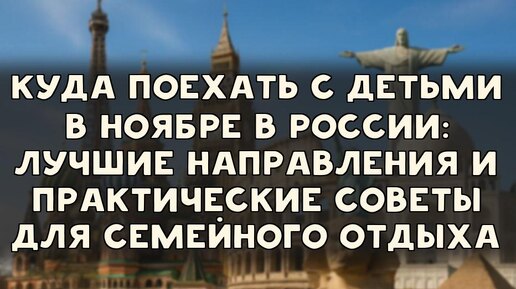 Ноябрь в России — время, когда летние каникулы уже позади, а зимние еще не начались. Тем не менее, это отличная возможность для семейного отдыха, если правильно выбрать направление. В этой статье мы рассмотрим лучшие места в России, куда можно поехать с детьми в ноябре, чтобы провести время интересно и с пользой. Мы предложим разнообразные варианты: В ноябре отдых с детьми на юге России — это возможность продлить ощущение тепла и солнца, когда в средней полосе уже по‑зимнему холодно. Мягкий климат,...