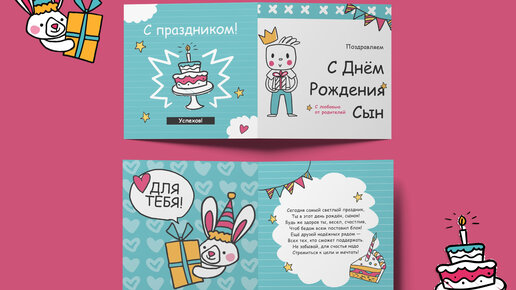 Оформление выполнено в рисованном стиле, а мотивационное поздравление воодушевит юного мужчину. Такую открытку можно заказать на сайте: https://trt74.ru/catalog/otkrytka Обложка и разворот Картинка для соц. сетей Поздравление сына с Днём Рождения в стихах:...