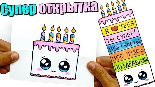 1. Оригинальная открытка на День Рождения в виде тортика с пожеланиями внутри...