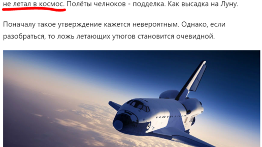 Оказывается, что в космос не летали не только Меркурии, Джемени и прочие Апполоны. Согласно исследованиям нового поколения разоблачителей опровергают великих гуру разоблачения лунной аферы, которые утверждают, что первым пилотируемым космическим аппаратом США был как раз Спейс Шаттл...