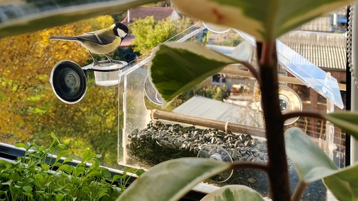 Уже год как к нам прилетают синички. Люблю их очень) Найди особенно упитанную птичку)