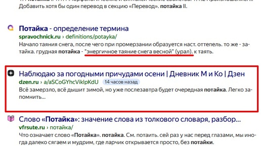"Неужели мне не хватило великого и могучего, что пришлось придумывать новое слово? " - подумал я, когда прочитал комментарии к прошлой публикации. Это я про слово "потайка", которое употребил в прошлой публикации. Как оказалось, слово относится к категории малоизвестных. Ради интереса полез в Интернет, чтобы узнать - есть ли вообще такое слово или это плод моего лексикона. Взгляд в выдаче Яндекса сразу зацепился за строчку, где был упомянут мой канал: К счастью, чуть выше это слово было обозначено, как "уральское"...