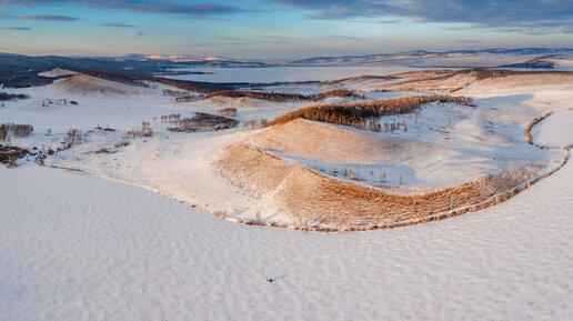 Не очень известное, но достаточно красивое озеро Сарбаголь спряталось за горкой от более знаменитого Большого (Парного) озера. В отличие от своего "Большого" брата летом оно не кишит толпами туристов, зимой так вообще даже в солнечный выходной день на льду замечено лишь пара рыбаков...