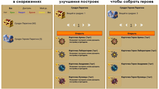 Всем привет! Решил собрать максимально подробную информацию по Парагону в MMOQuest: как работают герои и постройки, где всё брать, сколько времени и денег реально нужно, и какие есть фишки для прокачки. Здесь ты найдёшь честные расчёты, практические советы и ответы на все вопросы по теме парагона. Парагон — это отдельная локация в игре, где ты можешь выполнять квесты, получать за это репутацию и сундуки с карточками построек. Как открыть парагон? Думаю, большинство уже знают, но вот ссылка на видео-гайд для новичков...