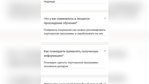 Партнерки это навсегда 🙊 Надежда пришла на тренинг и сразу разобралась, как работать с партнерками. Всё уже применила на практике и планирует партнерки сделать основным источником дохода. А почему бы и да, если там всё очень просто. Вы даже не представляете насколько! Надежда благодарю за отзыв 🥳 На партнерках вы можете сразу отбить стоимость тренинга...