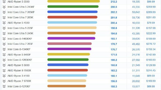 Intel заняла 7 мест в топ-10 рейтинга CPU с лучшим соотношением цены и производительности по версии PassMark