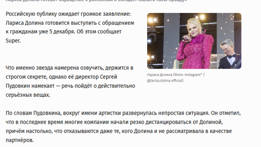 «Ситуация очень сложная»: Лариса Долина хочет что-то сказать стране...