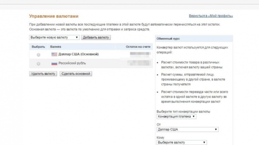 Перевести на PayPal доллары в рубли можно через опцию "Обмен валюты". Курс обычно отличается от установленного банком-эмитентом. Пользователи могут выбрать наиболее подходящий режим, сменив настройки. Правильное использование PayPal позволяет избегать двойной конвертации при товарно-денежных отношениях. Если не воспользоваться специальными настройками, то бесконтрольный обмен увеличит стоимость покупки до 10%. Перед началом операции узнайте актуальный курс доллара. Для этого необходимо: В первом окне выставите российский рубль, а во втором американский доллар...