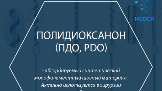 PDO известны в медицине с 1980-х годов как рассасывающиеся хирургические нити. Однако в последнее время они активно используются в эстетической медицине и занимают одно из первых мест в ряду современных омолаживающих технологий. ПДО-нити решают проблемы морщин и ярко выраженных складок, а также обвисания кожи лица и тела в результате возрастных, травматических и других изменений. Нить ПДО обладает высокой биологической инертностью и атравматическим прохождением сквозь ткани, прочна, эластична, гидрофобна, некапиллярна и нефитильна...