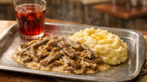 Есть блюда, которые невозможно забыть. Они впечатываются в память вместе с запахами школьных коридоров, гулом заводских цехов и звоном алюминиевых подносов. Печень по-строгановски — именно такое блюдо. Для тех, кто застал советские столовые, один только аромат обжаренного лука со сметаной способен мгновенно перенести на тридцать-сорок лет назад, в эпоху комплексных обедов и граненых стаканов с компотом. Удивительно, но это незамысловатое на первый взгляд кушанье имеет аристократические корни и сложную кулинарную судьбу...