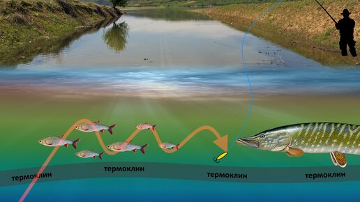 Приветствую Вас читатели Дзена. Хочу поделиться с начинающими рыбаками о том, что такое пелагическая проводка и термоклин и как можно неплохо отловиться по хищнику в середине лета. В жаркие летние деньки хищник становиться очень капризным, совсем недавно ходил по Воронежскому водохранилищу ловить хищника в забродах, кстати, кому интересно вот обзор на мой забродный комбинезон (https://otzovik.com/review_11968426.html ). Недалеко от берега увидел стаю окуня и мелкого судачка, впервые с таким сталкиваюсь, рыба стояла на месте как поплавки в толще воды на глубине в пол метра или чуть выше от дна...