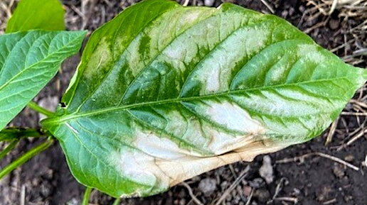 Здравствуйте. С вами Светлана и канал ЛЮБИМАЯ УСАДЬБА На снимке ниже вы можете наблюдать пожелтение перца, которое не связано ни с какими заболеваниями. Ни с грибковыми ни с бактериальными , ни с вирусными. Это простой солнечный ожог листьев перца. Я так уверенно утверждаю, что это сонечный ожог потому, что практически ежегодно, проживая в южном регионе , стлкиваюсь с такой проблемой. При солнечном ожоге на листьях перца вы никогда не увидите никаких пятен, отличающихчя по цвету от основного цвета листа перца...