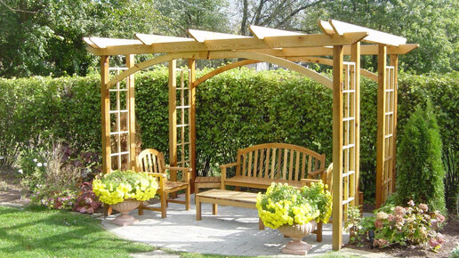 Перголы – это разновидность малых архитектурных форм в виде навеса, составной частью которых является решетка, увитая вьющимися растениями и заменяющая крышу. У перголы нет потолка и стен – это не беседка. Она не защищает от дождя и ветра и даже не всегда прячет от солнца. Но с каждым годом эта бесполезная садовая конструкция все популярнее. Это сейчас она скорее для красоты, чем для пользы, а сначала было наоборот: в античности легкие арки из древесины устанавливали на виноградниках для поддержки лозы...