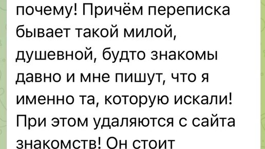 Переписка - это не отношения. Даже если человек признается в любви и строит планы на совместную жизнь. А вот то, что до отношений у вас не доходит, говорит о том, что есть подсознательные страхи этих отношений, возможно, страх повторения негативной ситуации. Очень часто человек вообще не представляет, что его удерживает от отношений, потому что быть в переписке, но не встречаться, это значит оставаться в безопасности от отношений. Или быть любовницей — это тоже быть в безопасности от супружеских отношений...