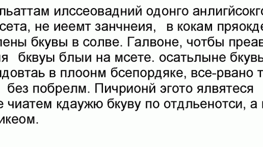 Здравствуйте, уважаемые читатели! И снова моя еженедельная рубрика "лингвоголоволомка выходного дня", в которой я рассказываю какой-нибудь интересный факт и на его основе даю вам несколько загадок. И сегодня мы поговорим о явлении, при котором человек способен прочитать текст, даже если буквы в словах поменяют местами. Как обычно, сначала немного теории, а в конце небольшая головоломка для вас. Порядок букв не важен? Те, кто давно сидят в интернете, могут помнить такой текст, ходивший по социальным сетям: Этот эффект назвали типоглисемией...