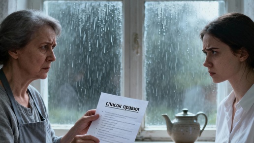 В конверте было пять правил. Бумага плотная, как открытка: лощёная, белая, пахнущая чужими духами. Имя адресата — «Для Алины» — выведено аккуратным, твердым почерком, с таким горделивым росчерком в конце, будто подпись уже сама по себе была аргументом. Алина держала это в руках — тонкий прямоугольник, весомый как приговор, — и думала о том, что утро начиналось с ванильного аромата блинчиков и тихого стука дождя, а стало каким‑то слишком важным. — Возьми, доченька, — сказала Галина Ивановна, не сняв плаща...