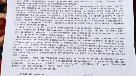 Ответ, который мне дали в "Народном фонде", когда я спросил про дивиденды от проданных ваучеров