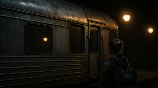 Поезд стоял на платформе, как будто забытый. Не тот гладкий современный поезд, что мчится по магистралям и не оставляет времени на раздумья, а старый, с матовым металлом и тёмными окнами, в которых отражались только фонари и чьи‑то немые силуэты. На перроне было немного людей — ни толпы, ни официоза провожающих. Лишь пара железнодорожников, которые что‑то обсуждали, и девушка с рюкзаком, смотревшая на поезд так, будто ждала от него ответа. Я прошёл мимо билетной кассы, где знак «касса» выглядел скорее как музейный экспонат: потускневший, чуть наклонённый...
