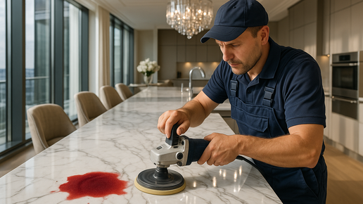 Бокал красного вина, опрокинутый на мраморную столешницу — не просто досадная случайность, а химическая атака на камень стоимостью 30-50 тысяч рублей. За 15 лет работы с элитными поверхностями я видел десятки испорченных столешниц, когда хозяева в панике вызывали нас после домашних вечеринок. Винные пигменты проникают в поры камня за считанные минуты, а через 2 часа могут образовать стойкое пятно глубиной до 2-3 мм. Восстановление такой поверхности может обойтись в треть стоимости новой столешницы...