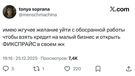220 человек лайкнули, видимо поддерживают путь в никуда :) Я вот вообще не знаю, чем стоило бы заниматься в 2026 году, если только не связанным с ВПК. Дроны - очень перспективно, но емко (не только военное применение, а гражданское - доставка грузов и т...