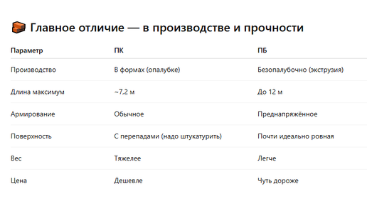 На первый взгляд, вроде и те, и те железобетонные, и оба варианта дырчатые (ребристые или пустотные), а по факту — разные технологии, разная надёжность и даже разная цена. Разбираемся по порядку: