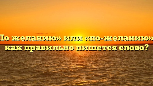 «По желанию» или «по-желанию» — как правильно пишется слово? Правописание – «по желанию» или «по-желанию» – определено орфограммой № 7. Как пишется правильно: «по желанию» или «по-желанию»? Безошибочен первый вариант – по желанию. Какое правило применяется? Выражение «по желанию» представляет собой сочетание, состоящее из предлога «по» и существительного 2 скл. ср. р. «желание» в форме дательного падежа единственного числа. В речевом процессе данное словосочетание употребляется в значении – «в соответствии с личными потребностями»...