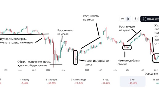 Поступил вопрос от читателя: как я выбираю, по какой цене покупать акции, а по какой не покупать, что служит ориентиром. Давайте его разберем. Сразу прошу не забывать, что это моя тактика инвестирования, и главное, чтобы она устраивала меня. Итак, прежде всего, я смотрю, интересна ли мне акция в принципе, стратегически. Если не интересна - я не буду ее покупать, какой бы привлекательной цена не была (например, Газпром, ВТБ, Аэрофлот, ВК, АФК Система... тут длинный список, но это, пожалуй, самые яркие его представители)...