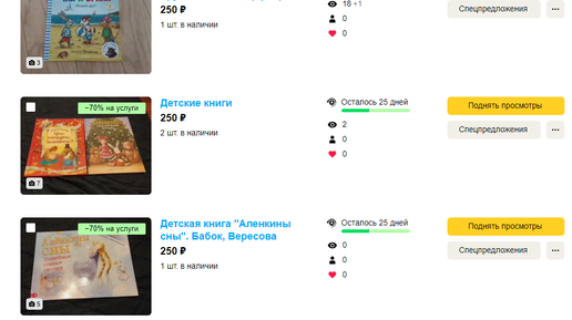 Некоторое время назад я составила себе план разбарахления на весну. В марте у меня по плану разбор шкафов с книгами. Книг у меня достаточно много, поэтому я понимаю, что если в каждом объявлении продавать по одной книге, то никаких лимитов у меня не хватит. Но! Я задумалась о том, что может все такие есть смысл продавать печатную литературу по одной штуке? Какой смысл выставлять в одном объявлении одну книгу Я решила провести эксперимент. Я опубликовала несколько объявлений с книгами и в каждом из них сделала приписку, что у меня в профиле есть и другие книги...